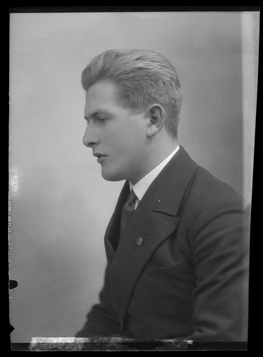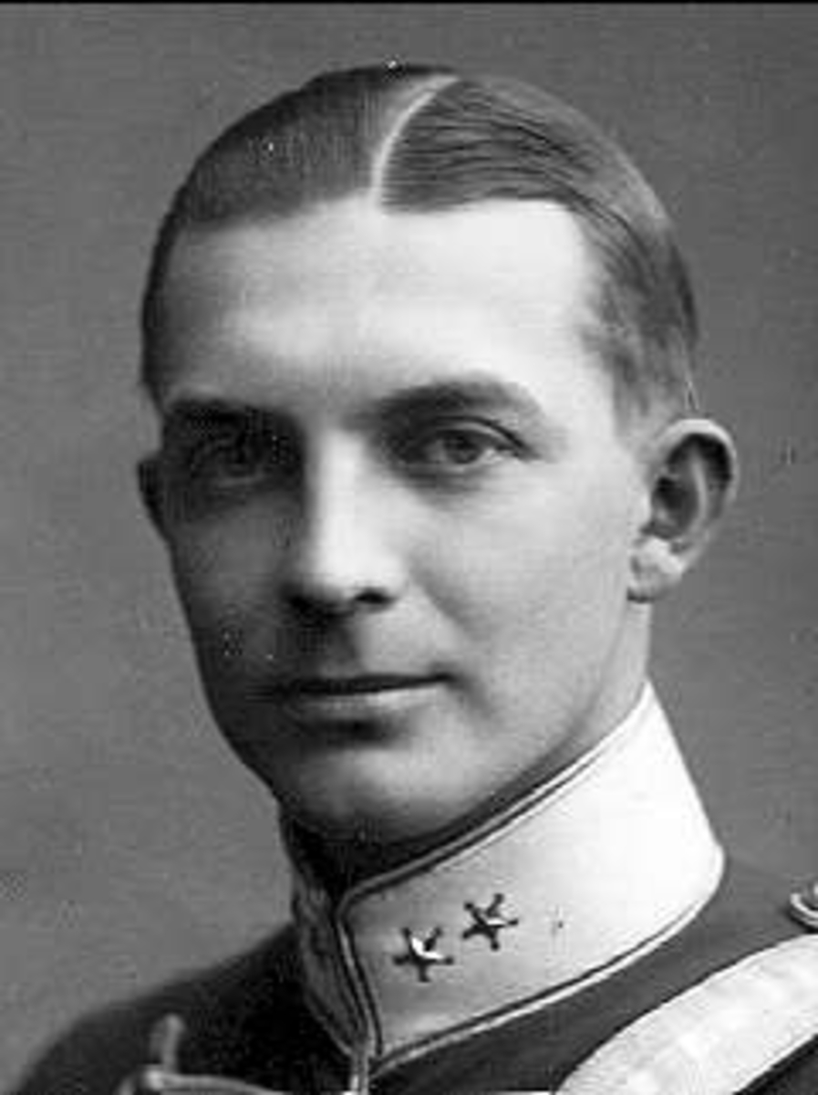 Porträtt av löjtnant Carl-Erik Berthold, allmänt kallad "Ballotti". Senare mobiliseringsofficer på F 6 i Karlsborg.