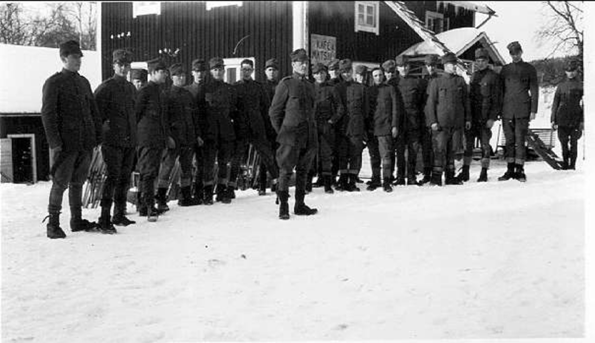 Officersaspirantskolan vid K 3 i Skövde 1929-30. Vinterövningar i Duved 1930, aspirantskolan samlad utanför förläggningen.