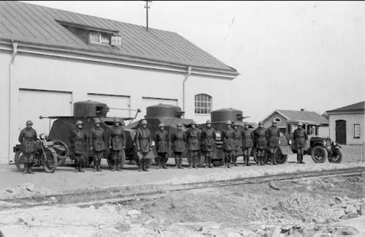 Kavalleriinspektören general Reinhold von Rosens slutinspektion och avsked av regementet. Här vid pansarbilskvadronen. (Pansarbil, försöksmodell).