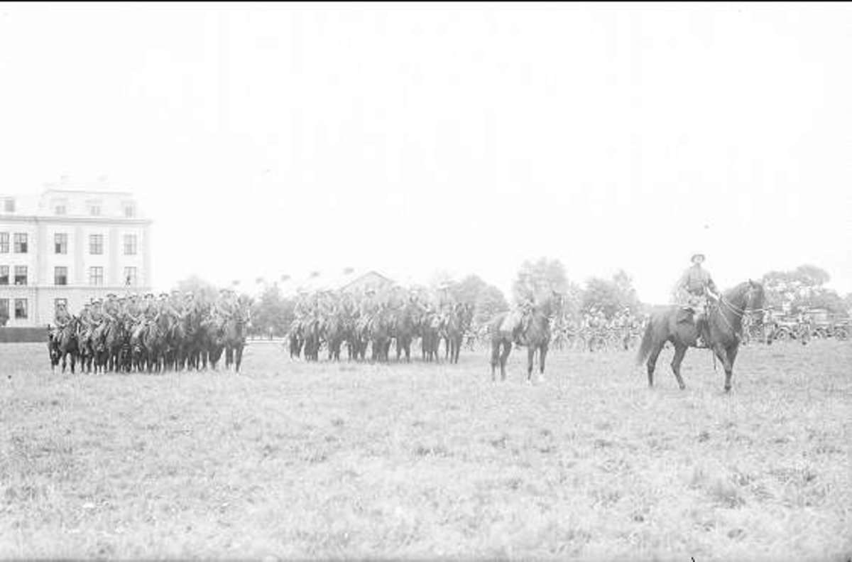 Kavalleriinspektören Reinhold von Rosens avsked av regementet sept. 1930. Regementet uppställt på fältet söder K 3 kasern. Skvadronschef livskvadronen löjtnant Hans Fock.