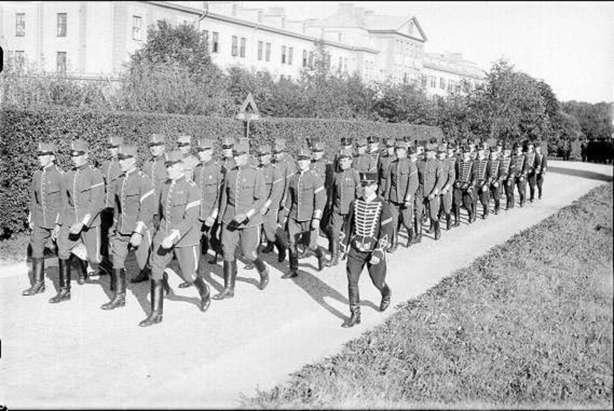 Kavalleriinspektören generalmajor Reinhold von Rosen tar avsked av regementet i sept. 1930. På bilden kavalleriets aspirantskola med chef. löjtn. Claes Peyron , K 2 (framför truppen till vänster) och adjutant sergeant Olof Mattss