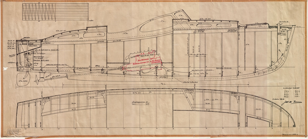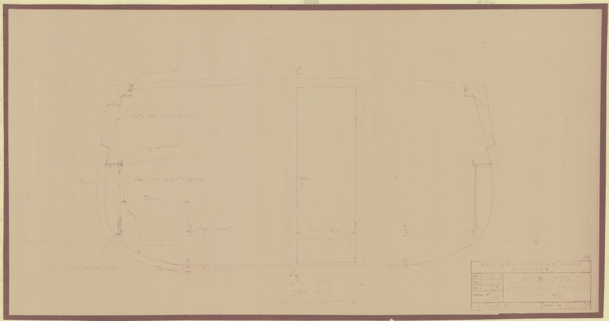 Argus (1917). Scale 1:96. A plan showing the inboard profile of the aircraft carrier HMS Argus (1917), illustrating her appearance as of 1938.