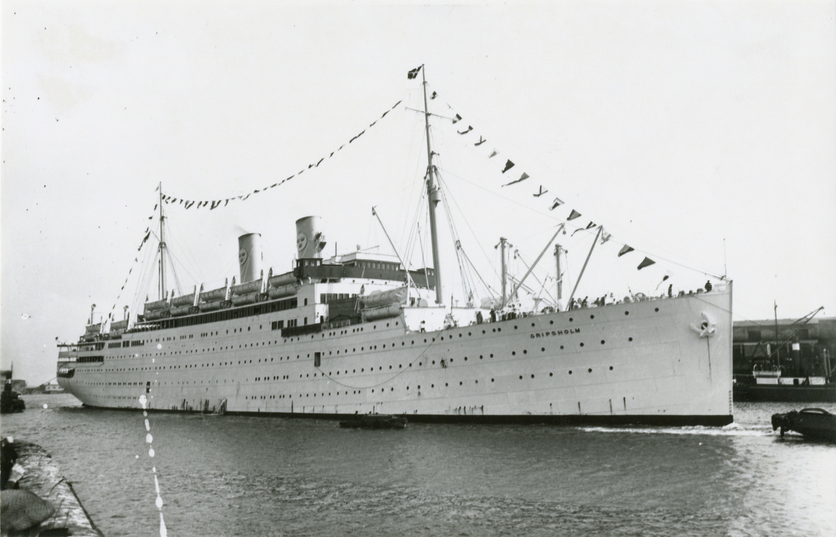 Foto visande passagerarfartyget Gripsholm av Göteborg, i Köpenhamn troligen 1945-46
