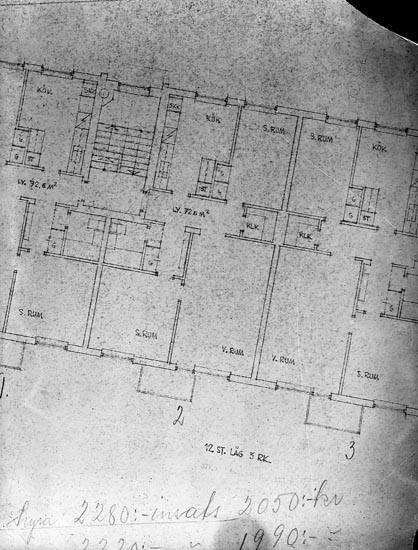Enligt fotografens journal nr 8 19511957: "Enander, Karta över lägenhet i Fastigheten "Svanen", Stenungsund".