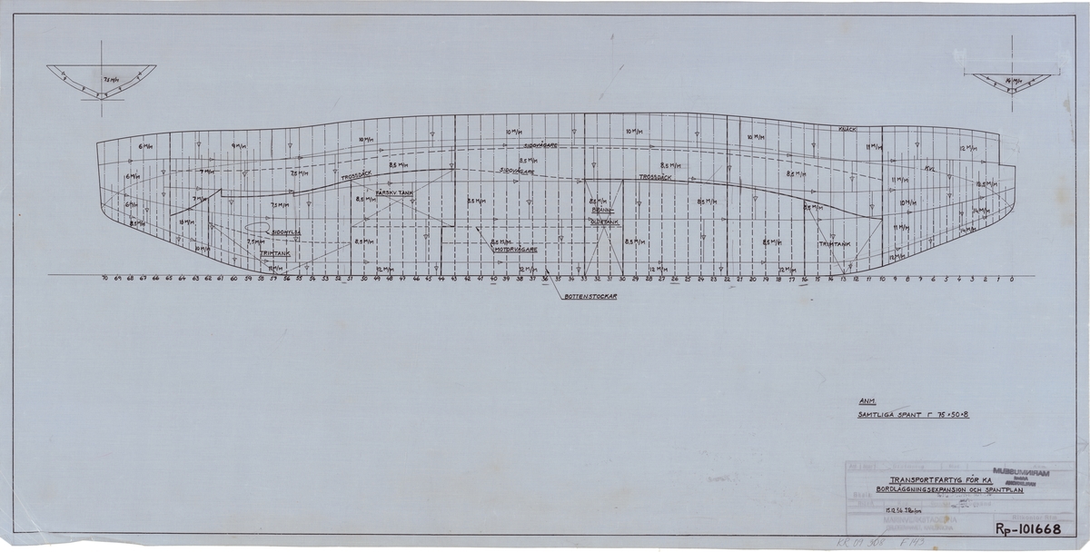 Ark Royal (1950). Scale 1:96. A plan showing the flight [No. 1] and upper gallery [No. 2] decks of the aircraft carrier HMS Ark Royal (1950).