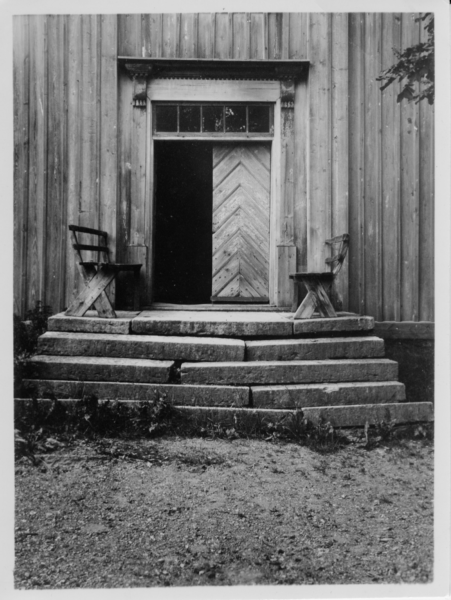 Äldsta manbyggnaden. Laxarby. Ingången. Innan huset flyttades till Dals Långed, 1937.