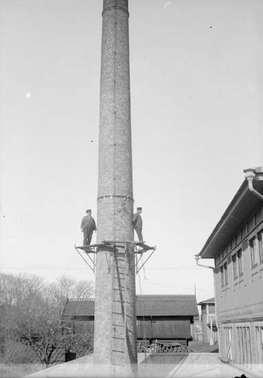 Enligt text som medföljde bilden: "Lysekil. Rep. af....? skorsten Maj 08."