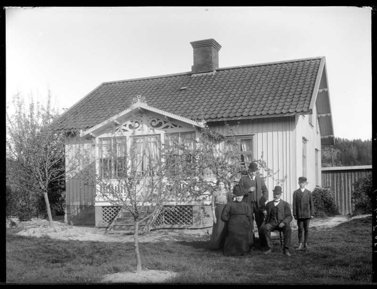 Familjen Ljunggren framför sitt hus i Marieström. Sonen Wilhelm Ljunggren står längst till höger på bilden