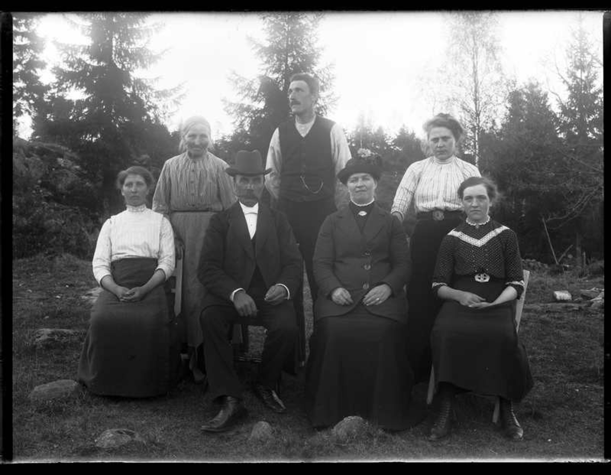 Olof Jonssons text: Torpängen 22 maj 1915 Okänd, Okänd, Olga, född Olsson, Forshälla 1891-05-12, Okänd, Britta Berntsdotter, Hjärtum 1843-07-12, Beda Jonsson född Björn, Bäve 1892-12-20, Abraham Jonsson, H