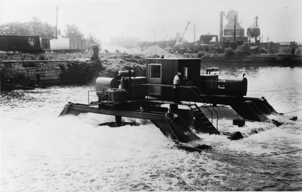 AB Purgator. Flodluftningsaggregat utrustat med två kaskadluftare Hi-Co Wave nr. 100. Chicagofloden, USA. Fabrikat Yeomans Brothers Co.