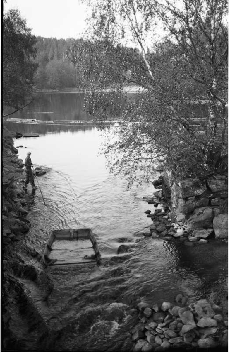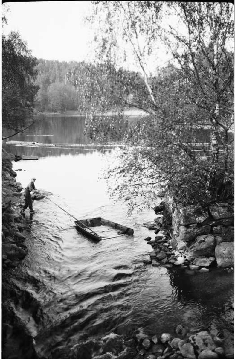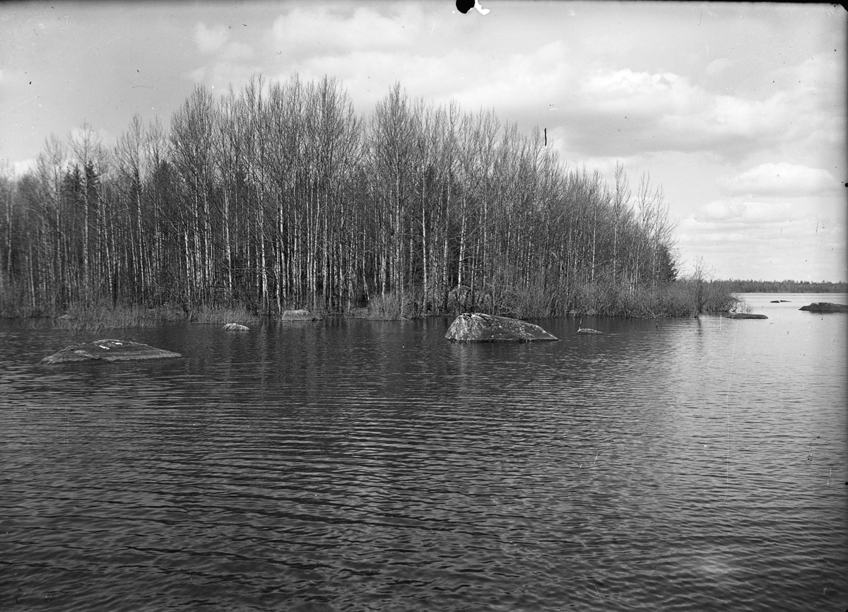 Bild från landsvägsbron över det smala sundet som vid Brobacka förbinder sjöarna Anten och Mjörn.