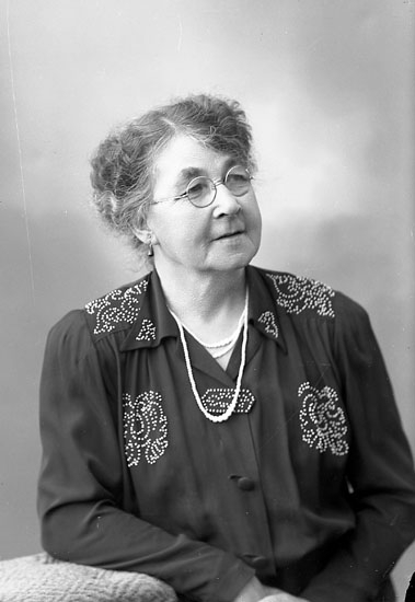 Enligt fotografens notering: "Fru Gurli Wallström, Ödsmål".