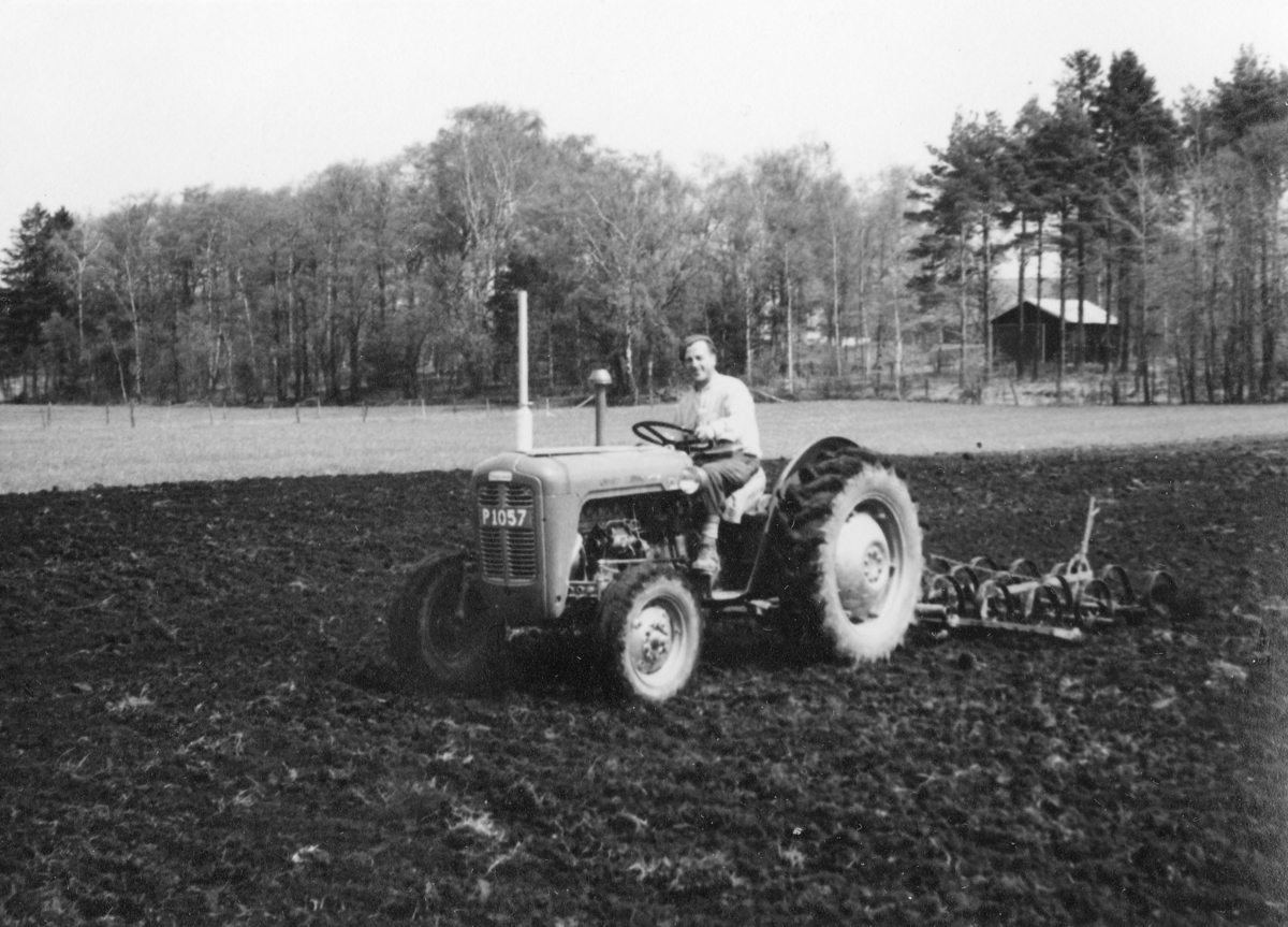 Västra Tunhem, Strömsberg. "Vårbruket kom sent igång på grund av ogynnsam väderlek. Här hemma kom Anders och hjälpte oss med harvning och gödselspridning..."