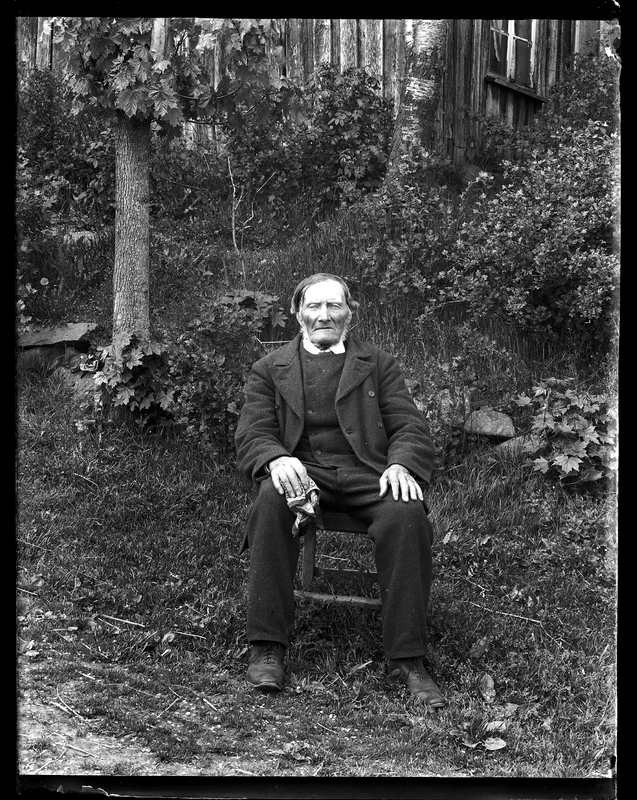 Petrus (Petter) Svenungsson, Hjärtum 1826-12-06, utanför sin undantagsstuga 14 juni 1909.