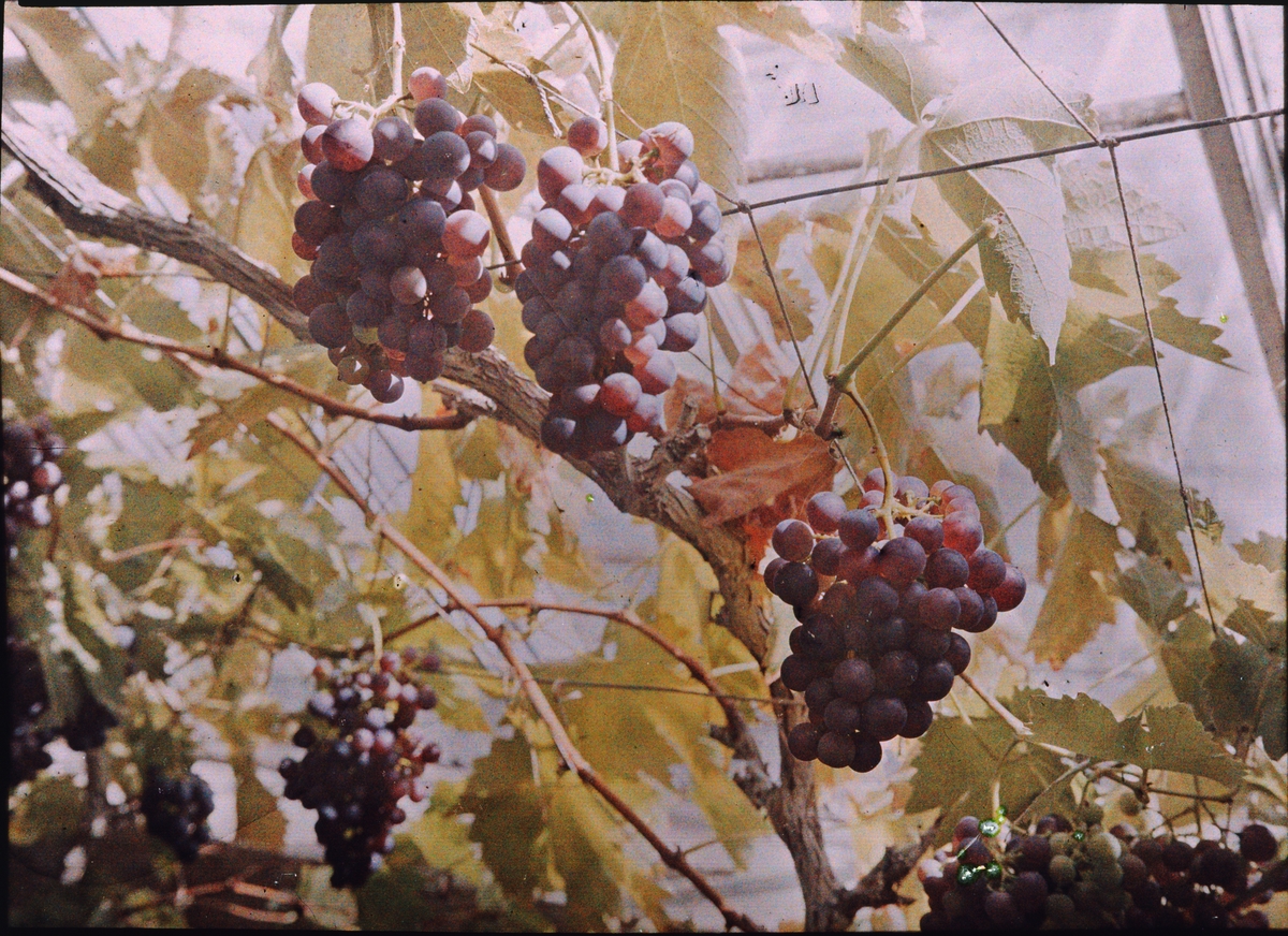 Lumières-autokrom. Druvor hos Jonatan Ohlson Balderup, Kullen. Fotograferad i augusti 1912 med f/48, 125 sek. exponering.