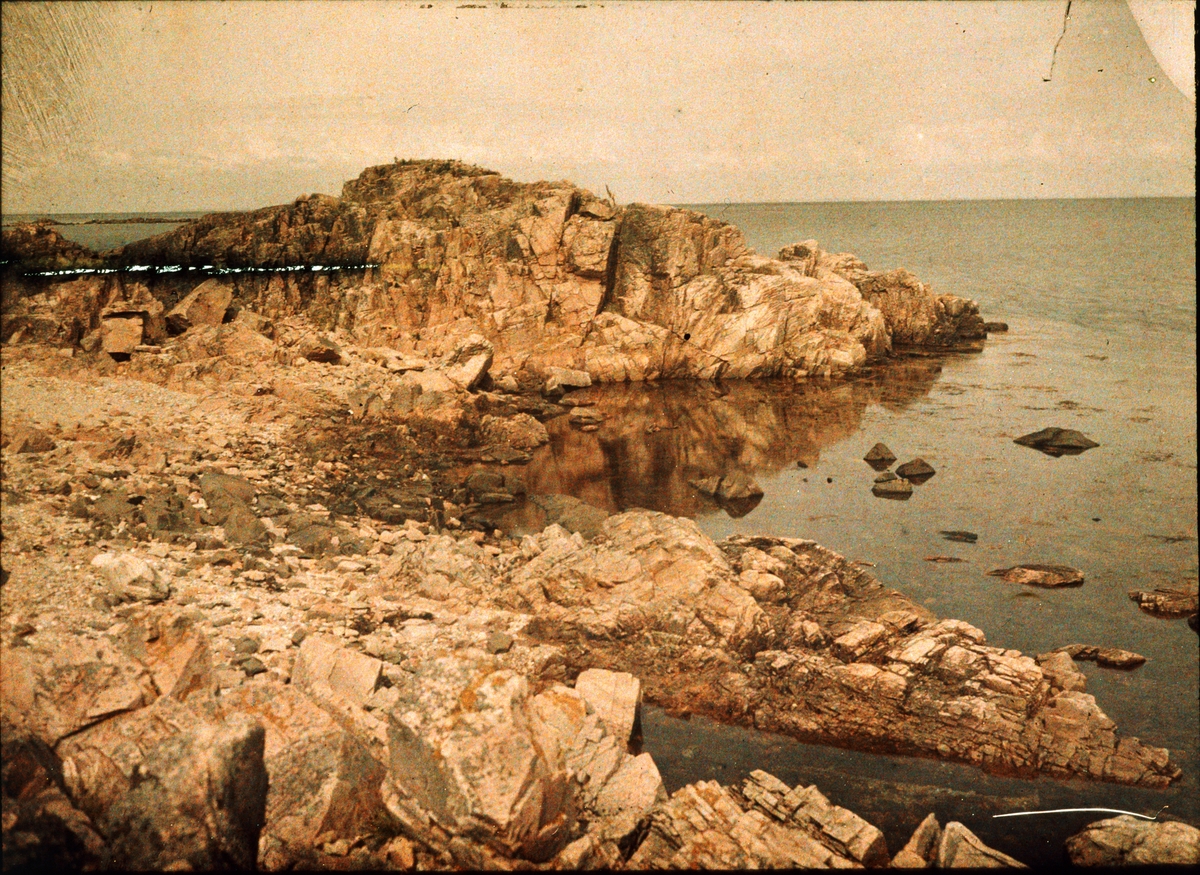 Lumières-autokrom. Klippor på Hallands Väderö (Torekov) Fotograferad i juli 1912.