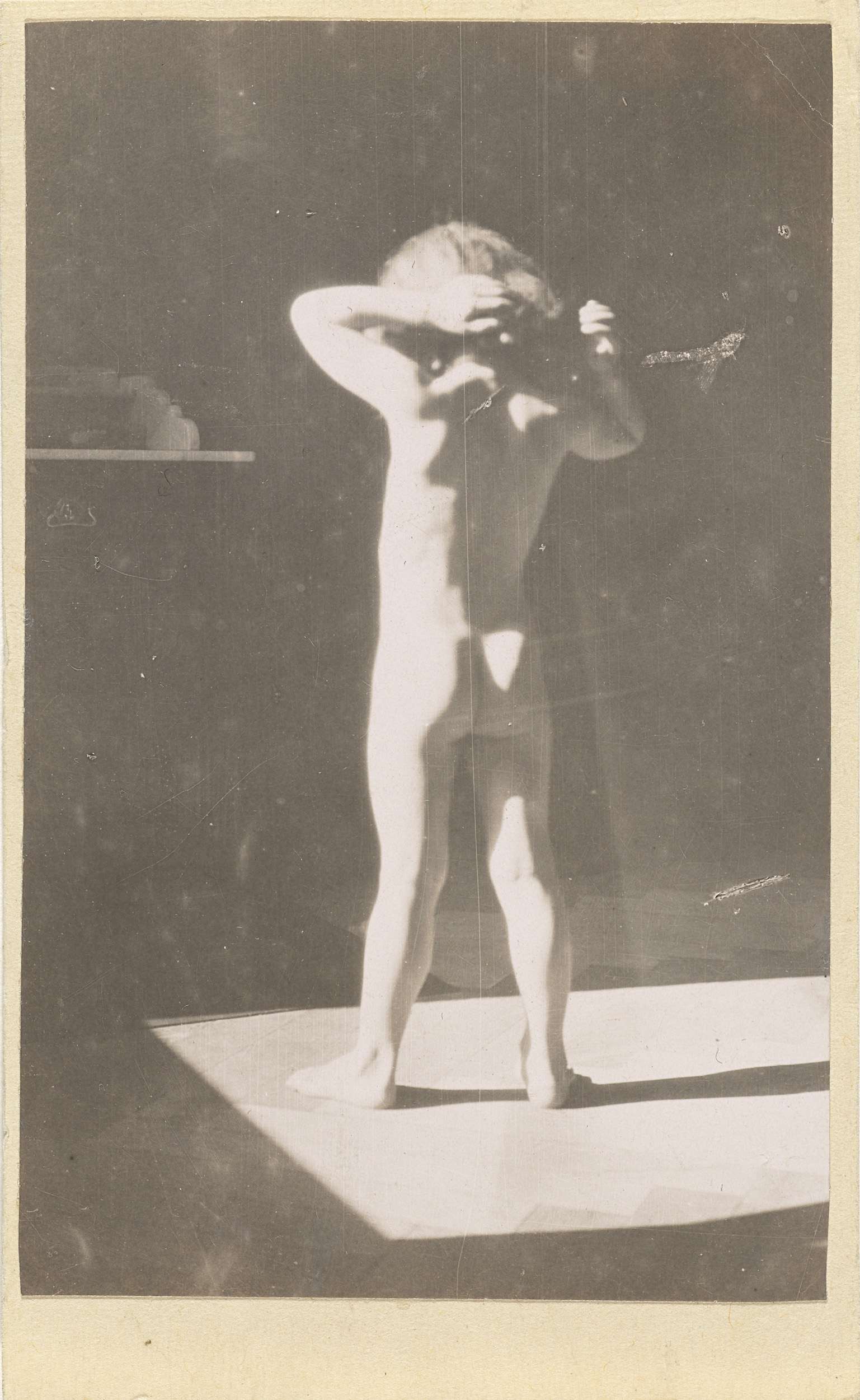 Marba Titzenthaler, dochter van de fotograaf, op het dakterras van het woonhuis Friedrichstrasse, Berlijn