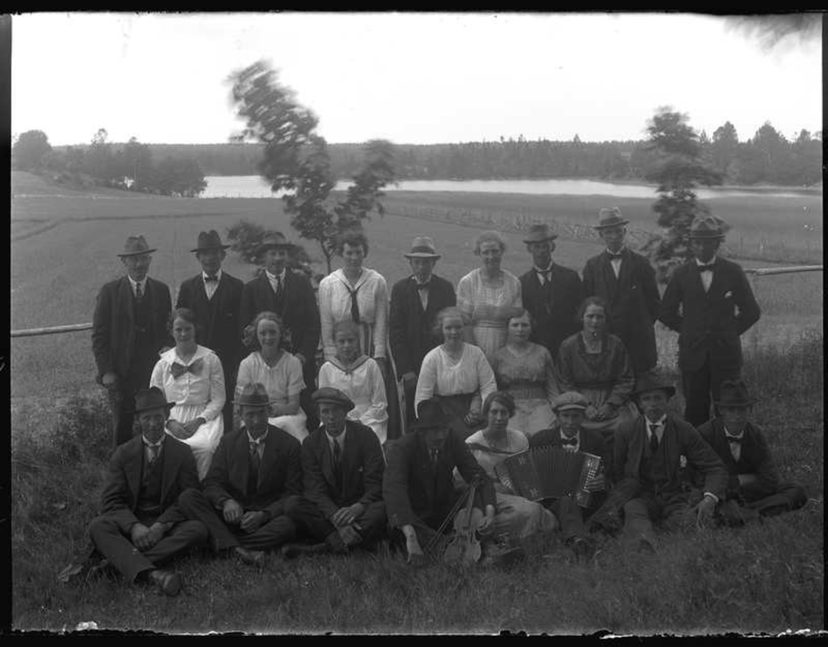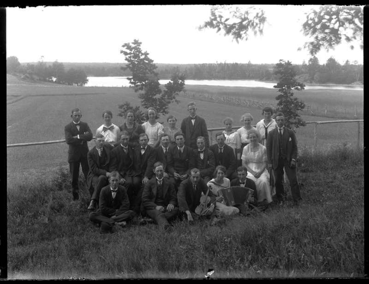 Olofs text: Gräsviken 20 juni 1920 2a från hö längst bak Ingvars pappa