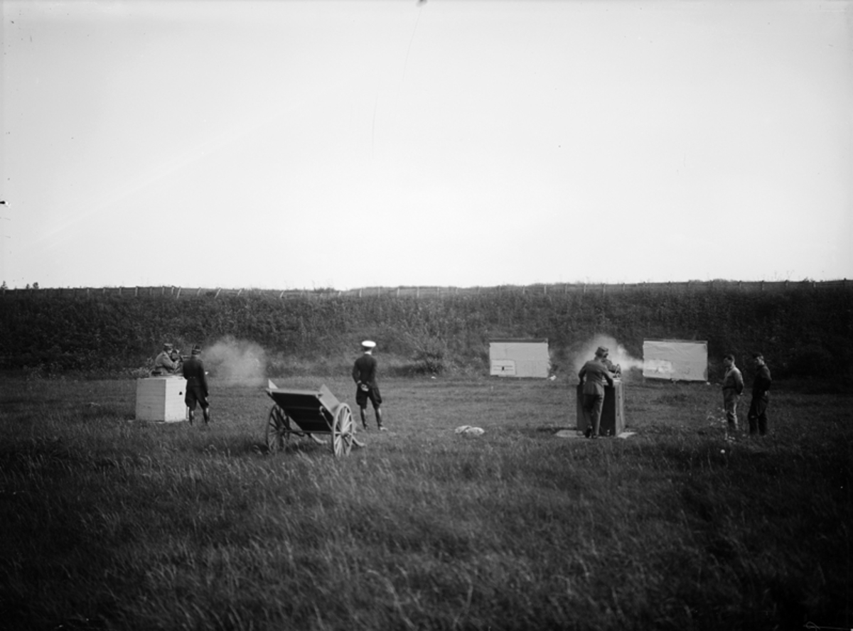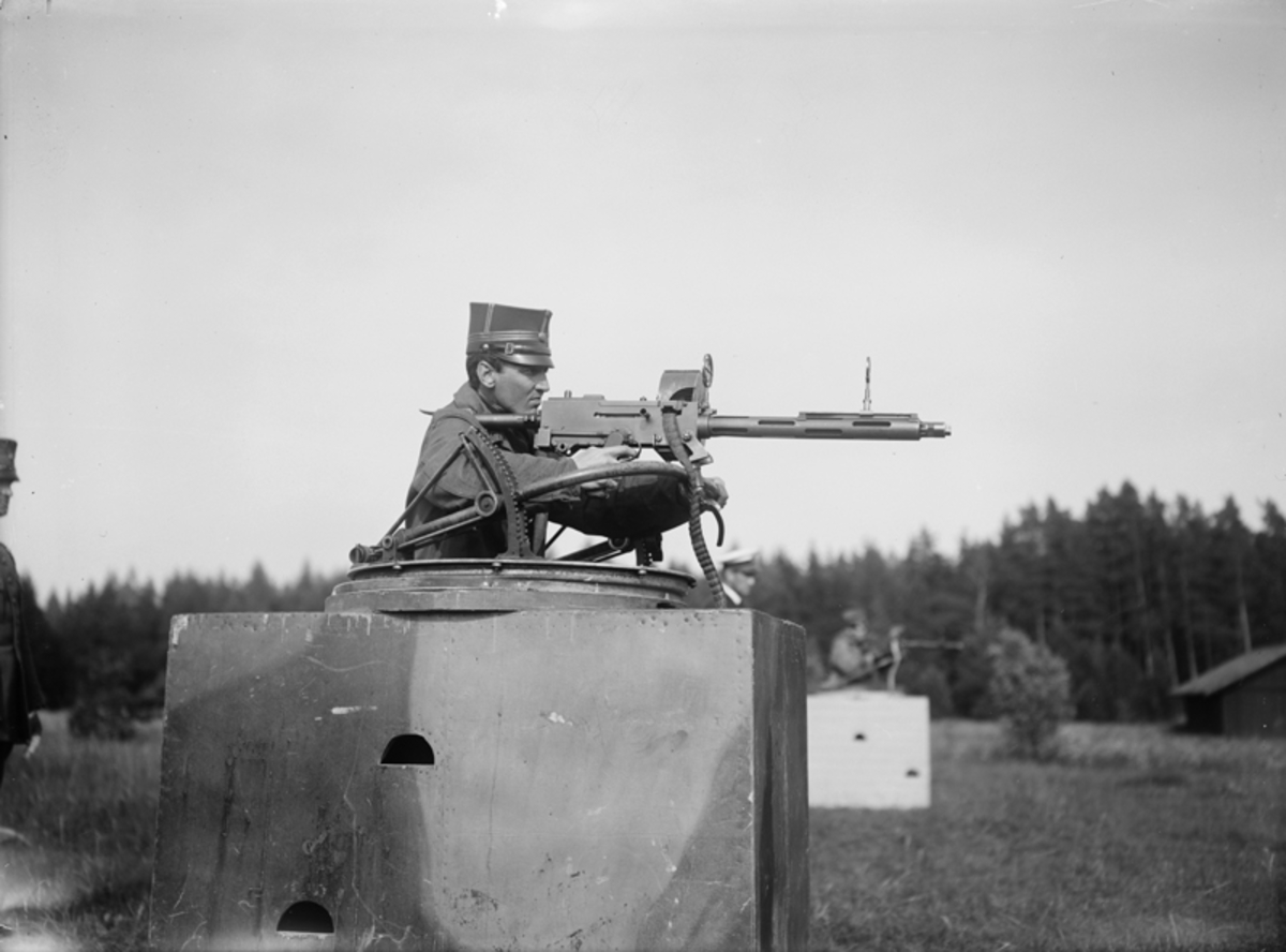 Övning. Skjutning med kulspruta mot måltavla på F 3 Malmen. Kontroll av måltavla.