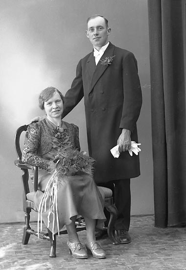 Enligt fotografens journal nr 6 19301943: "Andersson, Brudpar Höviksnäs".