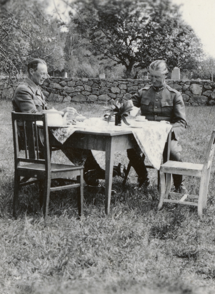 Överste Gustaf Berggren och kapten Torsten Hagstedt från Södermalands regemente I 10 äter ute.
