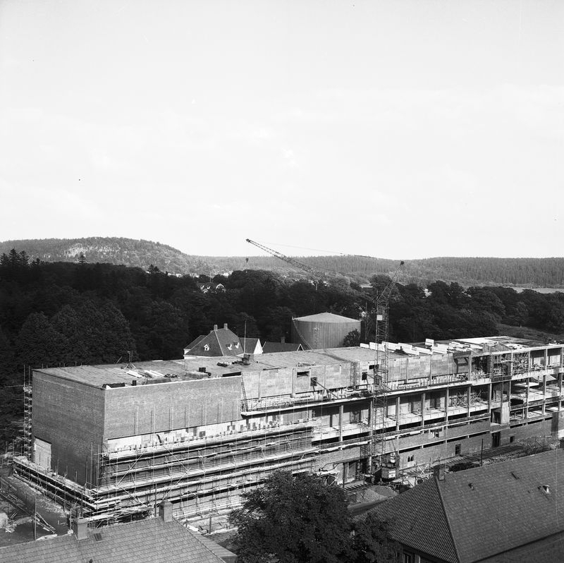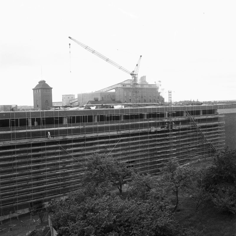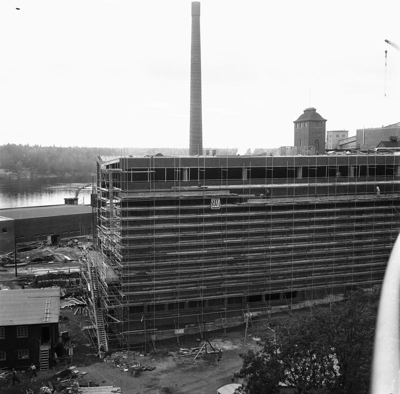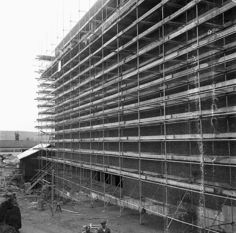 Wargöns AB. Byggnation av PM 5 1959-60. Foto och påförd text av dåvarande ritkontorschefen Ragnar Söderberg.