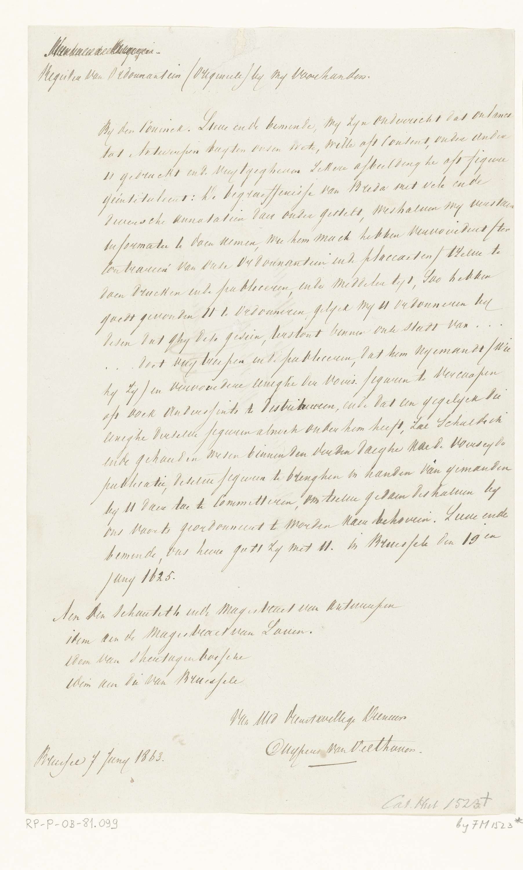 Afschrift van de ordonnantie met een verbod op de drukken en uitgeven van de spotprent op het geldtekort van Spinola, 1624