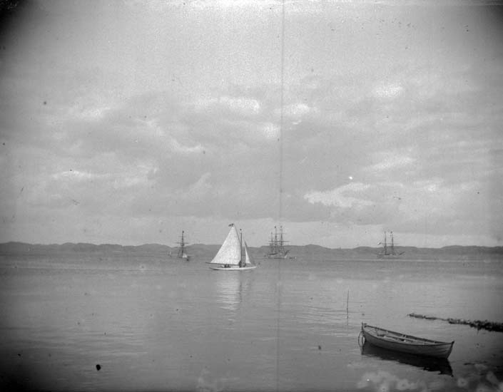 Enligt text som medföljde bilden: "Lysekil. Skeppsgossefartygen Najaden, Falken, Gladan från land 23/6 1899".
