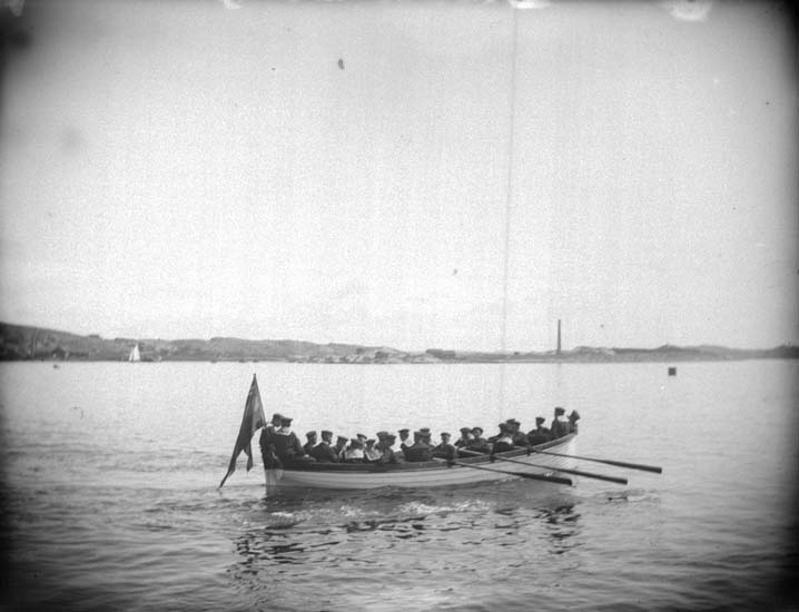 Enligt text som medföljde bilden: "Lysekil. En skeppsbåt med skeppsgossar 25/6 1899".