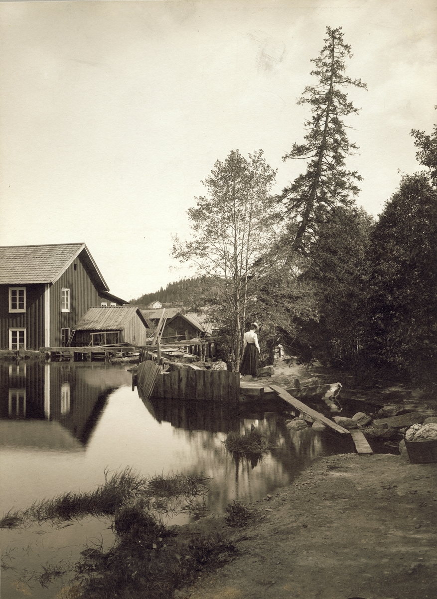 Fabriksbyggnader vid Falerum, Norra Tjust. Motiv nedanför spinneridammen.