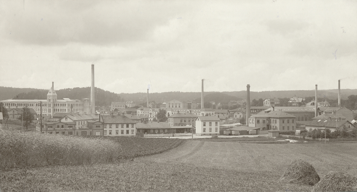 Utsikt över Åkerlunds Bomullsspinneri, Borås, från Stora Annelund.