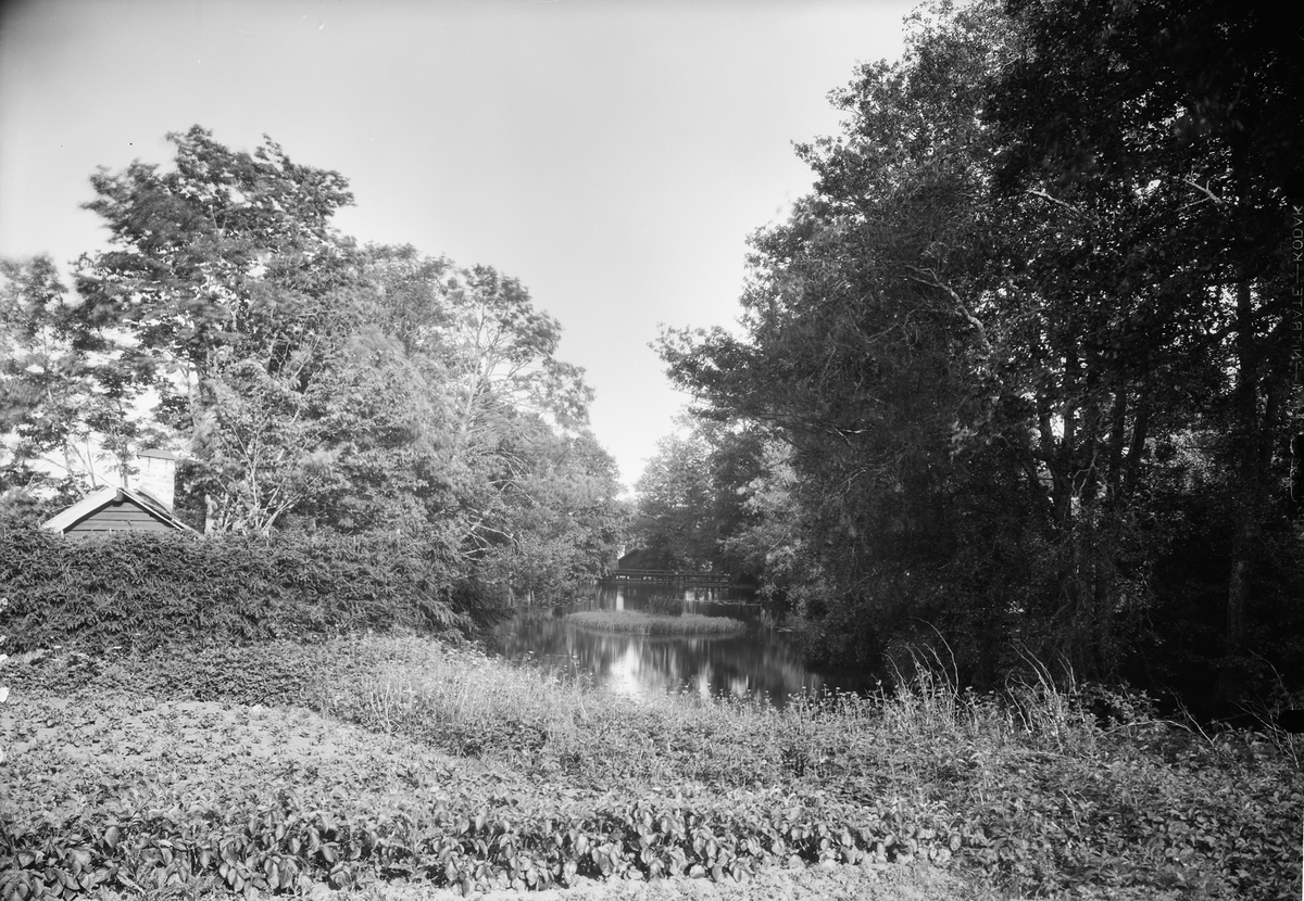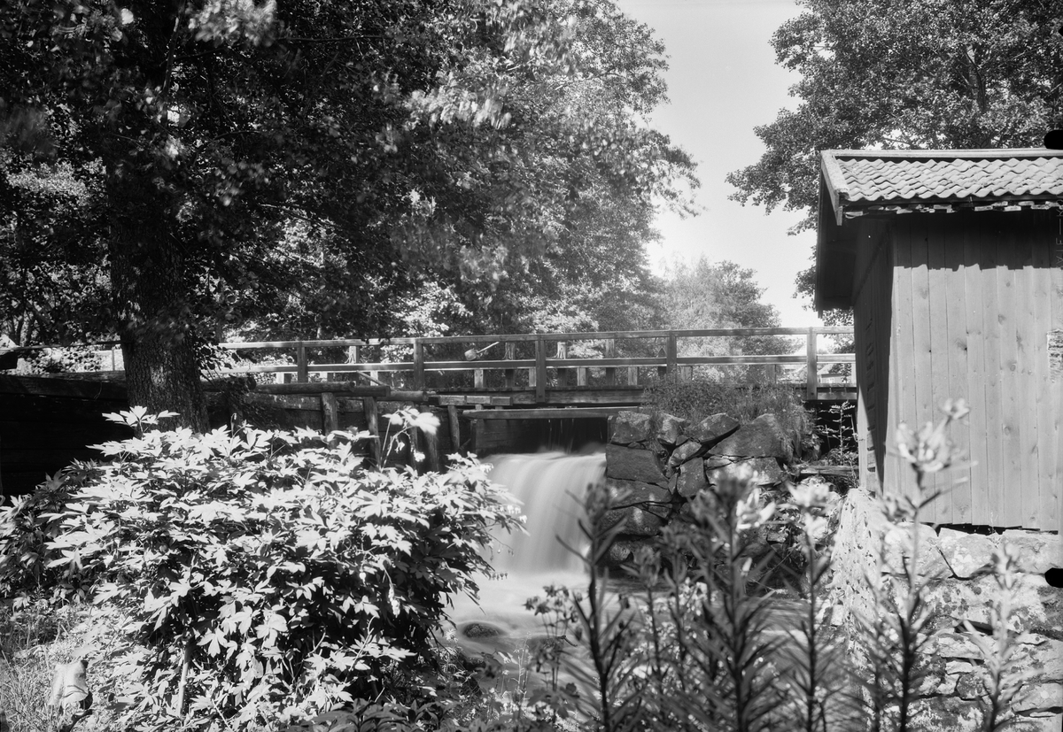 Bron med dammluckorna. Till vänster, vattenrännan till lilla smedjan. Till höger, vattenhjulshuset till sliphuset.