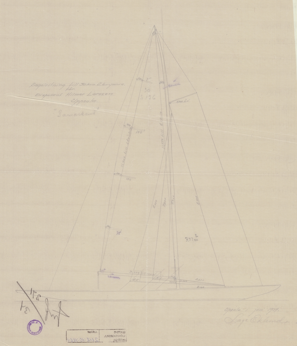 Galärvarvet, Stockholm, 1934. Vy över vattnet. I förgrunden syns en segelbåt.
