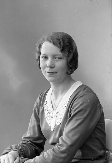 Enligt fotografens journal nr 6 19301943: "Andersson, Fru Alva Bö, Svanesund".
