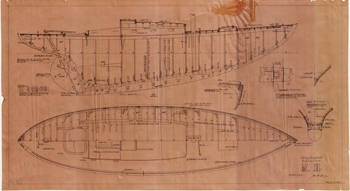 Fidelity BF1479 (1904). Scale 1:24. A plan showing the sheer lines with overlaid body drawing and longitudinal half-breadth of the Fidelity BF1479 (1904), a Scottish Zulu. The plan was draughted by Philip Jesse Oke at Plymouth in June 1936.