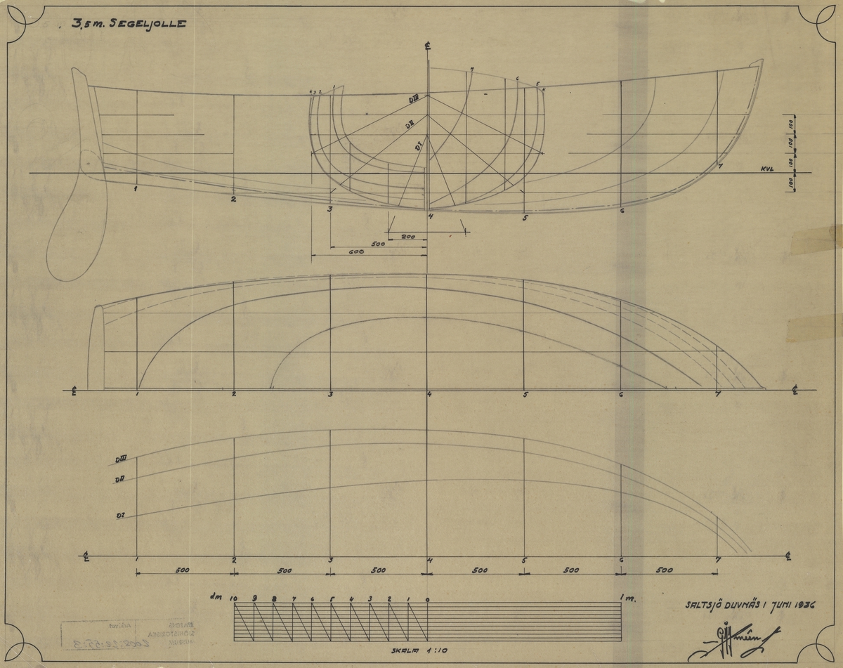 This class design plan is dated July 1936 and is stamped and signed by representatives of the Admiral