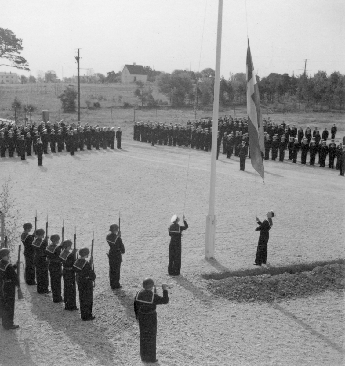 Svenska flaggans dag firas på Gotlands kustartilleriregemente, KA 3, vid Fårösund, 1938.