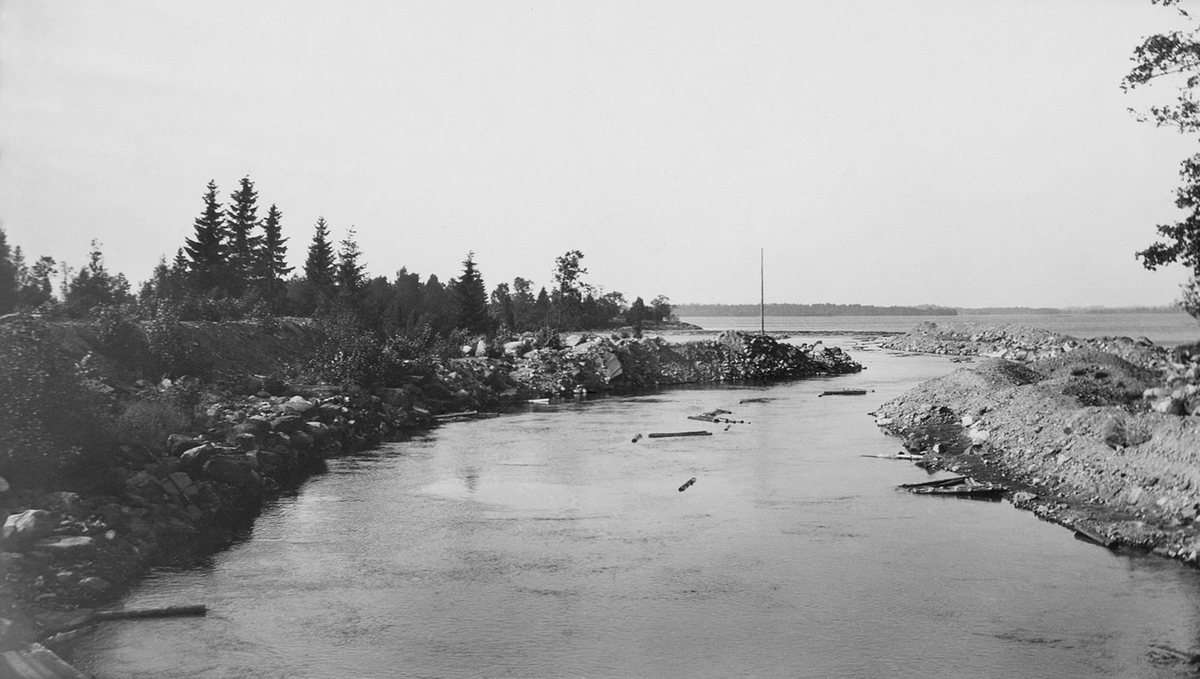 Lagan (Skålån). Sänkningskanal vid Flåsens utlopp vid B. Viskasmagasin i sjön. Tappning pågår.