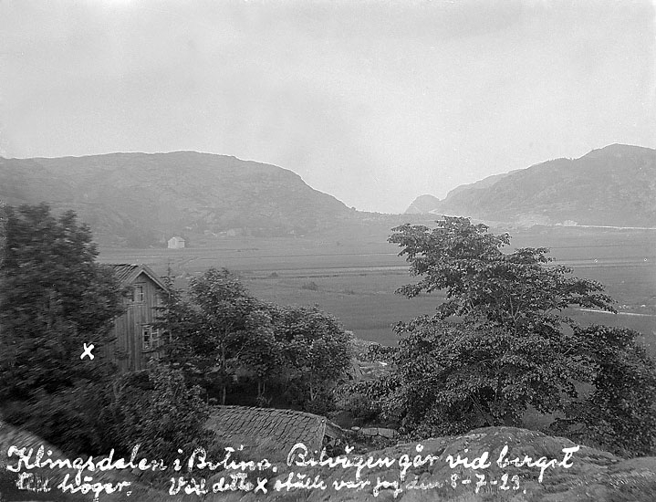 Johans text på fotot: "Klingsdalen i Bottna. Bilvägen går vid berget till höger.