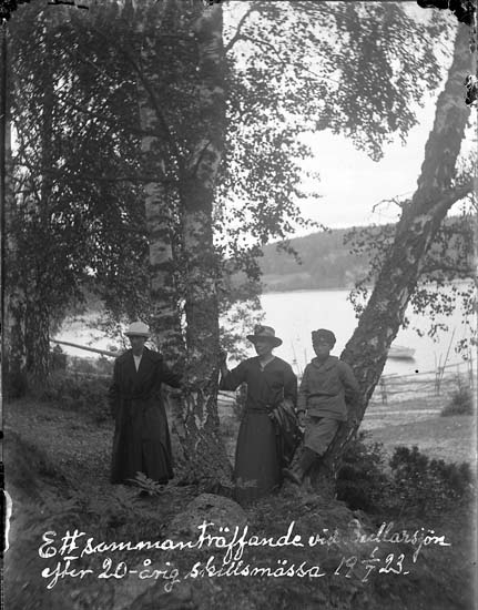 Enligt text skriven på glasplåten: "Ett sammanträffande vid Bullarsjön efter 20årig skillsmässa 1/7 1923."