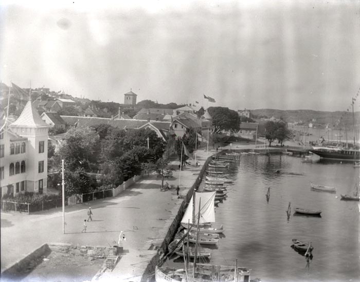 24/7 1926. Utsikten över Marstrand fr. Södra Strandverket och över engelska lustjakten "Rose Bell".
