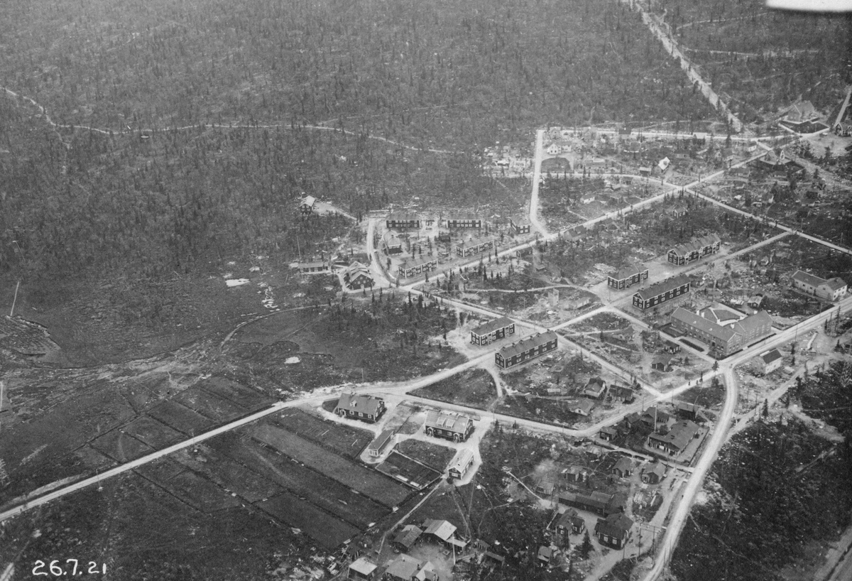 Flygfotografi över Malmen, tredje flygkårens stab. 'Flygtriangeln', Chefsvillan, och gården Lagerlunda syns även.