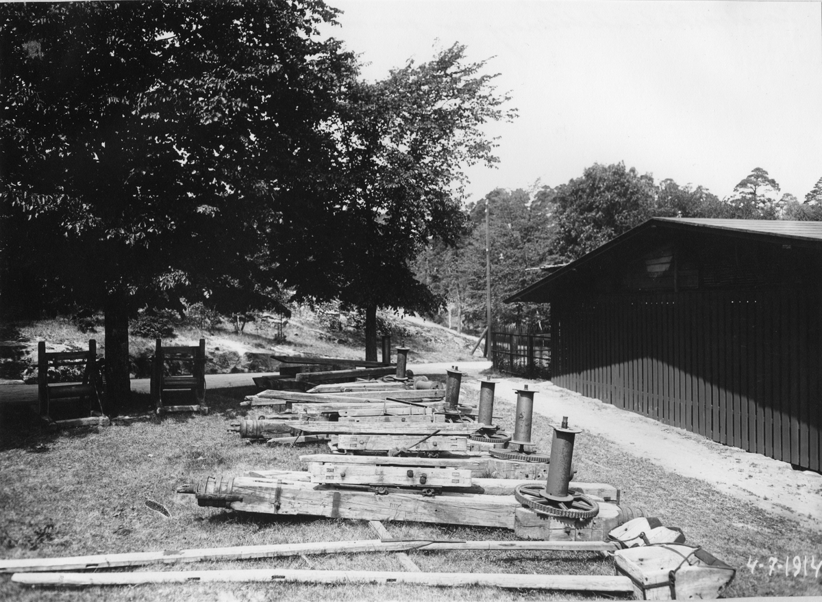 Ombyggnad av Trollhätte kanal, Trollhättan. Kanalverkets utställning av gammalt material 1914-07-04.