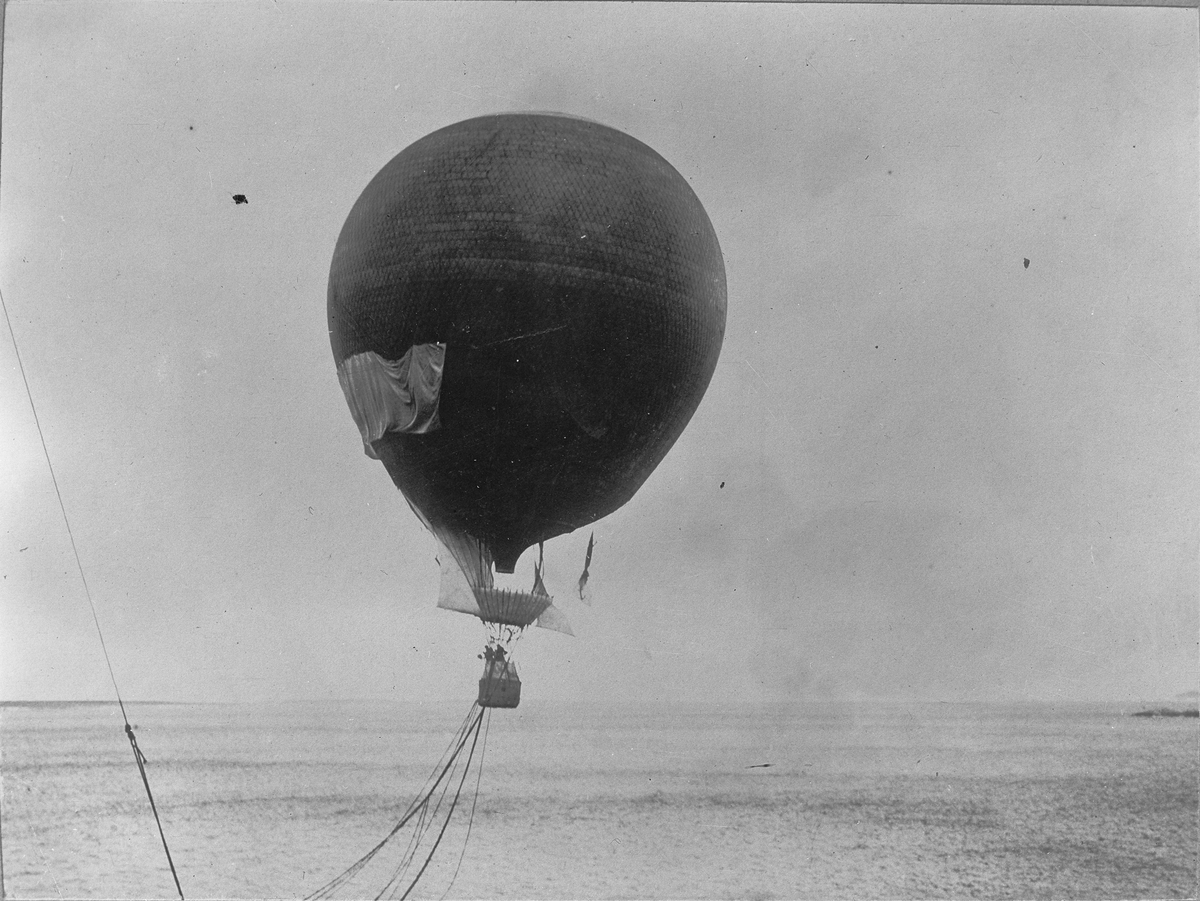 S.A. Andrées ballong vid avfärden från Spetsbergen den 11 juli 1897. Original tillhör Ingenjör James Sandberg, Stockholm.
