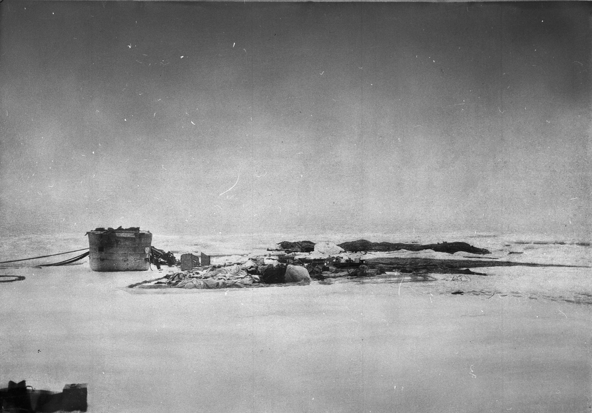 "Örnen", strax efter landningen på isflaket den 14 juli. Framtagning av bilderna gjordes av docent John Hertzberg år 1930 på Fotografi, Tekniska Högskolan.