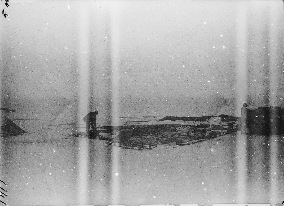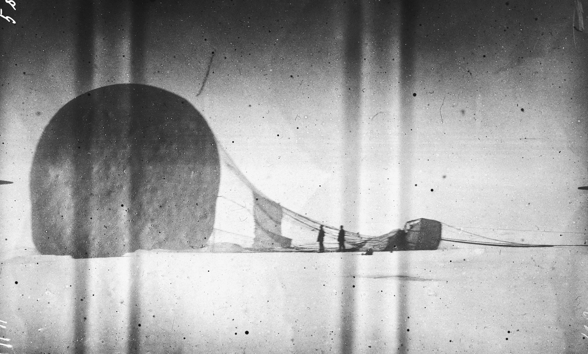 15 - 22 juli 1897. Den tömda ballongen och bärringen. Framtagning av bilderna gjordes av docent John Hertzberg år 1930 på Fotografi, Tekniska Högskolan.