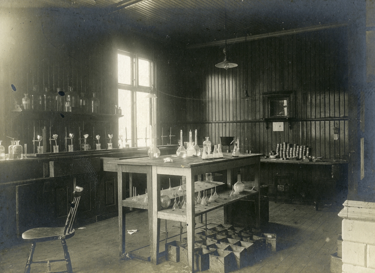 Laboratoriet vid Norbottens Malmförädlingsfabrik på Svartön i Luleå i juli 1901.