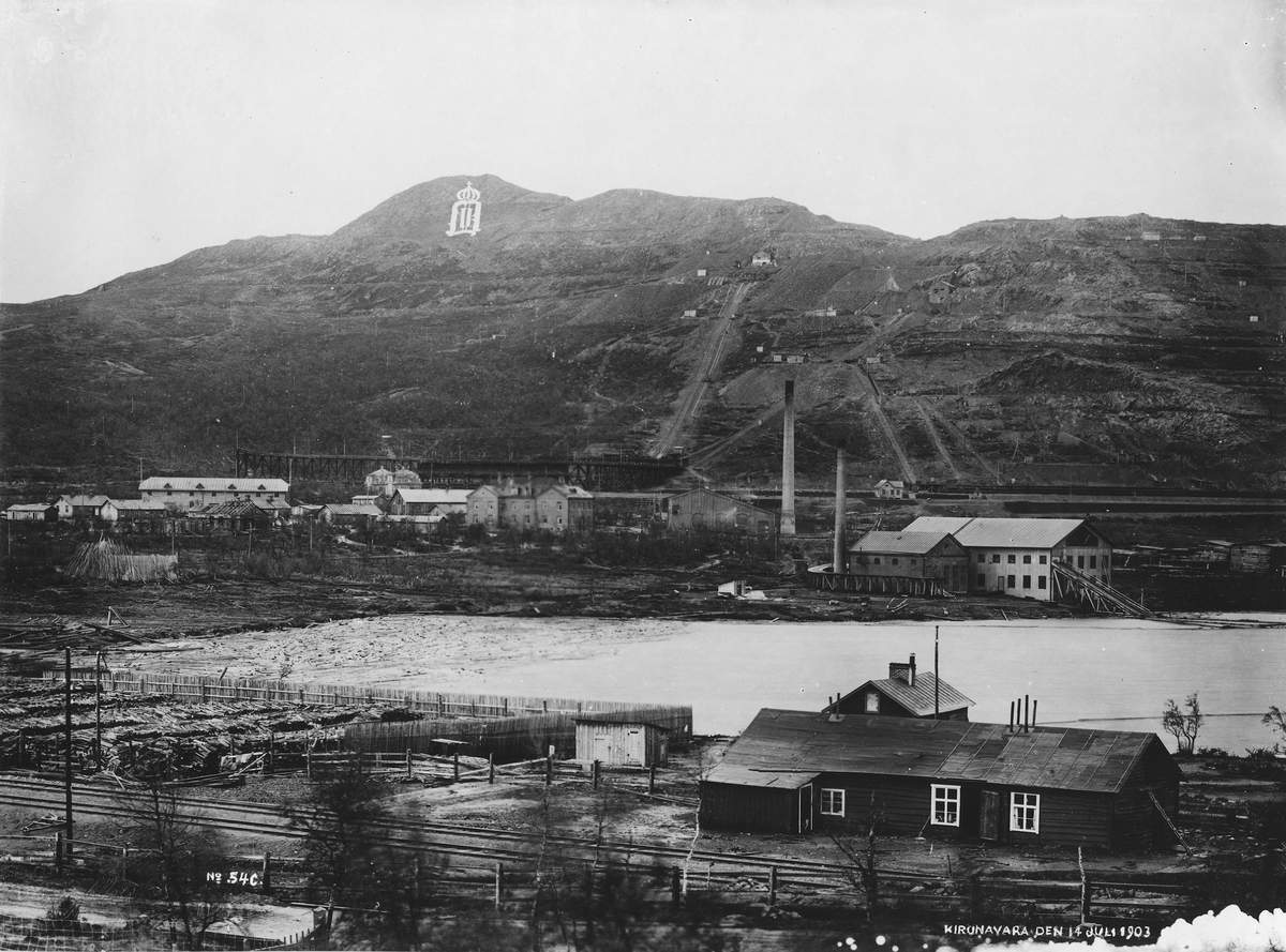 Järnmalmsfält. H.M. Oscar II:s monogram, 70*42 mtr. vid Kirunavaara. Gjort av lakansväv.
