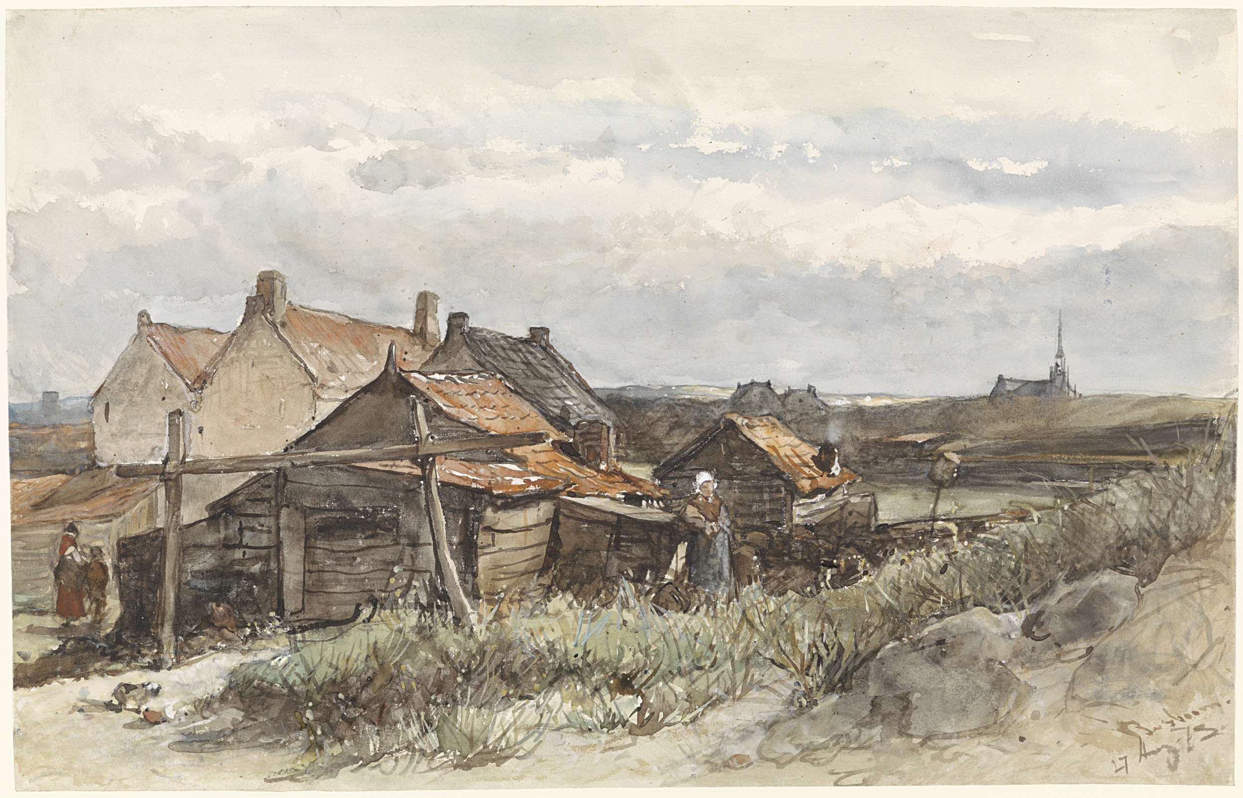 Botter Xe on the Y near Amsterdam. Randorp Tower in the distance. Medium includes graphite.; Signed by artist and dated.