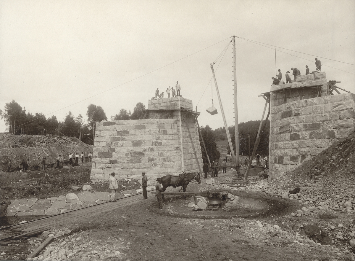 Bro över Svenljungabanan under byggnad. Fotot vann pris i Svenska Turistföreningens pristävlan 1902.